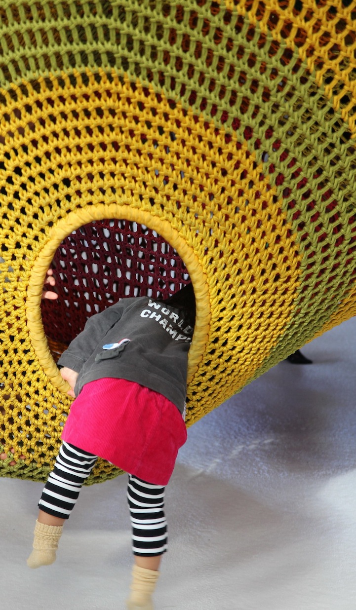 Toshiko Horiuchi é especialista em criar grandes ambientes têxteis, interativos, e com cores vibrantes.